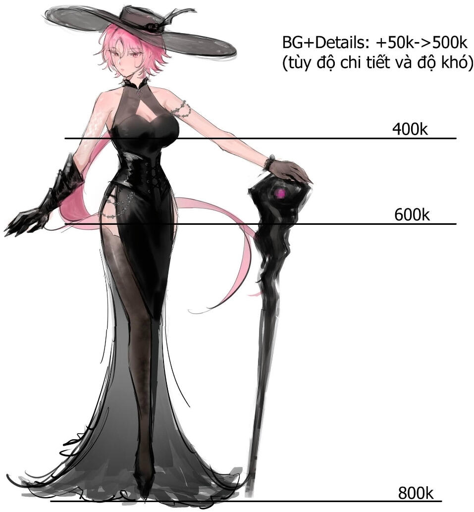 | Bg hoặc char nhiều chi tiết +30k mỗi phần | Head | Chest up | Half body | Full body | + 1 char |